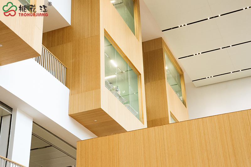 信陽學院南湖校區位于河南省信陽市南灣湖風景區科教園區,占地面積約1300畝,建筑面積約69萬平方米。項目中,從教學樓的裝飾,到圖書館和學生休閑區的打造,充分發揮了桃花江任意竹?的特質,將竹材的天然美學與科技工藝融入室內空間,以地板、墻板、扶手等為載體,詮釋了“竹文化”,打造出兼具文化厚度與功能硬度的綠色空間。這種清新自然,環保舒適的生活學習環境,既充滿人文關懷,又不失創新精神,完美契合了校區的設計理念:“崇尚自然、追求卓越、引領創新的山水校園,創建生活學習一體化社區,創造領先靈活的學習環境”。......